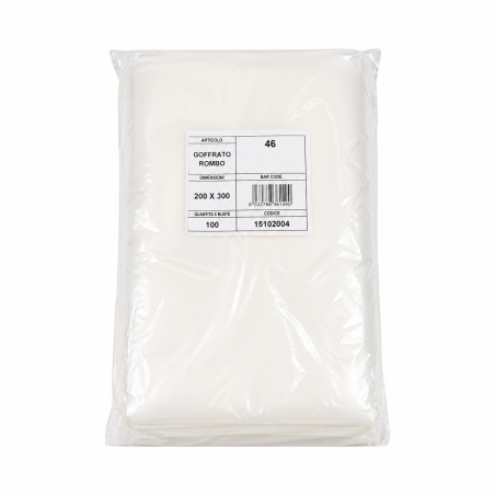 Sacs sous vide gaufrés, conditionnés par paquet de 100, conçus pour une conservation optimale des aliments. Structure adaptée pour une extraction d’air efficace, assurant une mise sous vide fiable. Idéals pour un usage professionnel ou domestique. Offre avantageuse : -10 % pour l’achat d’un lot de 10 paquets.