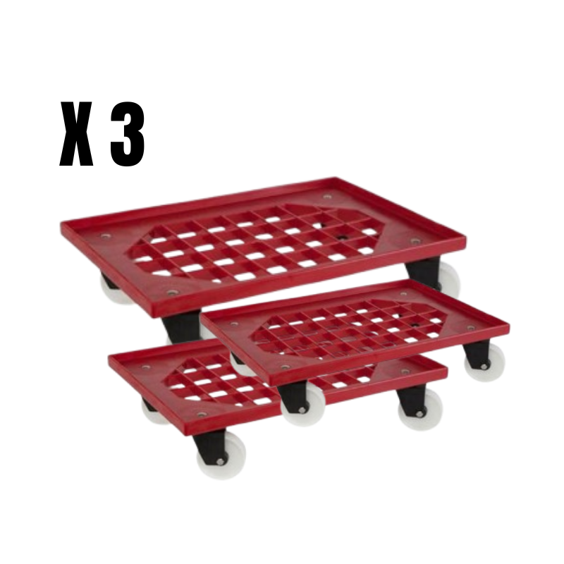 Roule Bac plastique 40X60 cm rouge - 4 roues